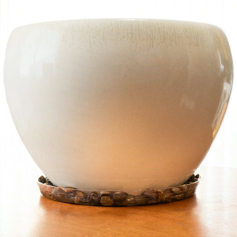 Pottery Pots 13 4 In Glossy White Stone Plant Saucer At Lowes Com